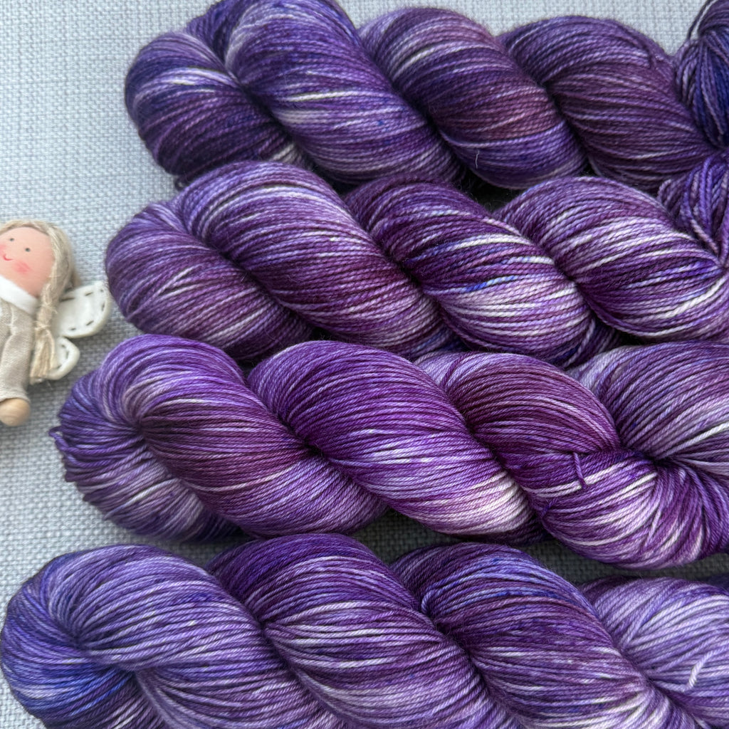 Lovingly hand dyed yarn inspired by the music 'Dance of the Sugar plum Fairy' by Tchaikovsky.