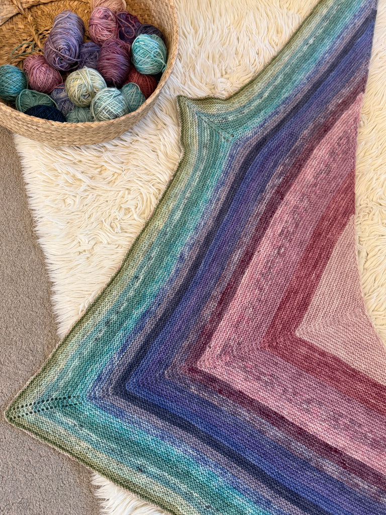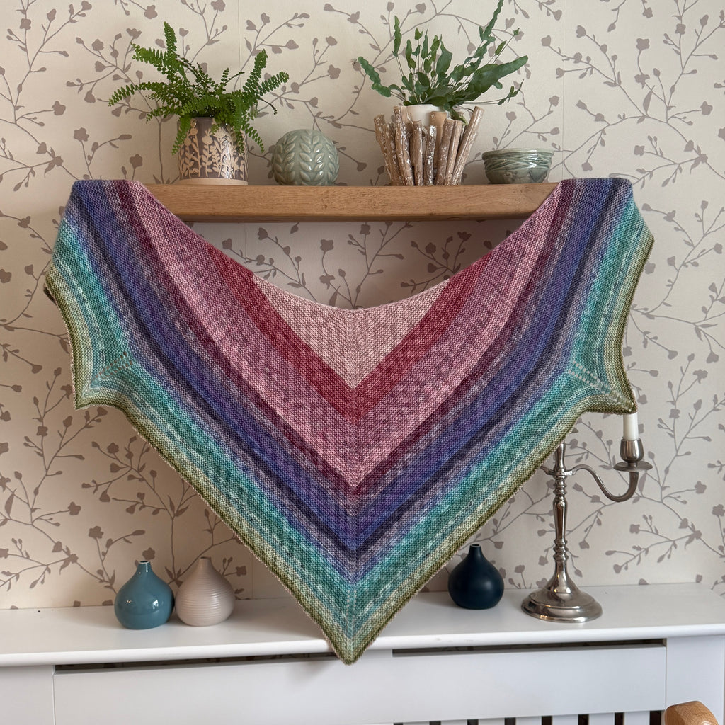 The Dragon’s Trove shawl pattern is inspired by the shape of a Dragon’s wing. This shawl is designed to showcase those special little minis. The simple design is suitable for beginners, so you can relax and enjoy how the yarn is working up. Instructions are written for 12 x 20g minis and 24 x 10g minis in 4ply yarn or 24 x 20g DK weight yarn. Tutorials are linked in the pattern to help you with picking up stitches on the Icord and the Icelandic bind off. Instructions are for both fingering and DK weight yarn. The price on my website includes VAT, if you purchasing from outside the UK you may find it cheaper on Raverly.