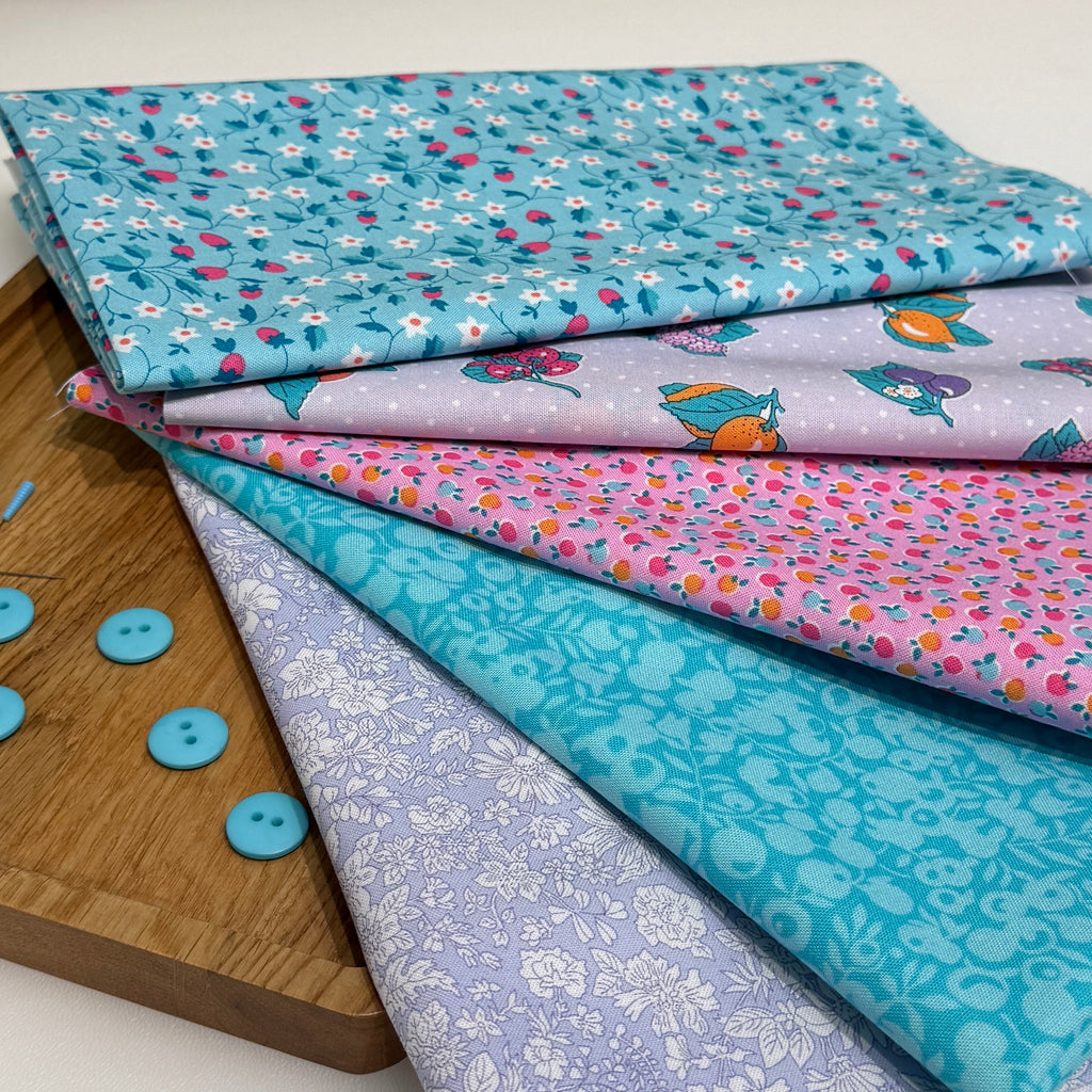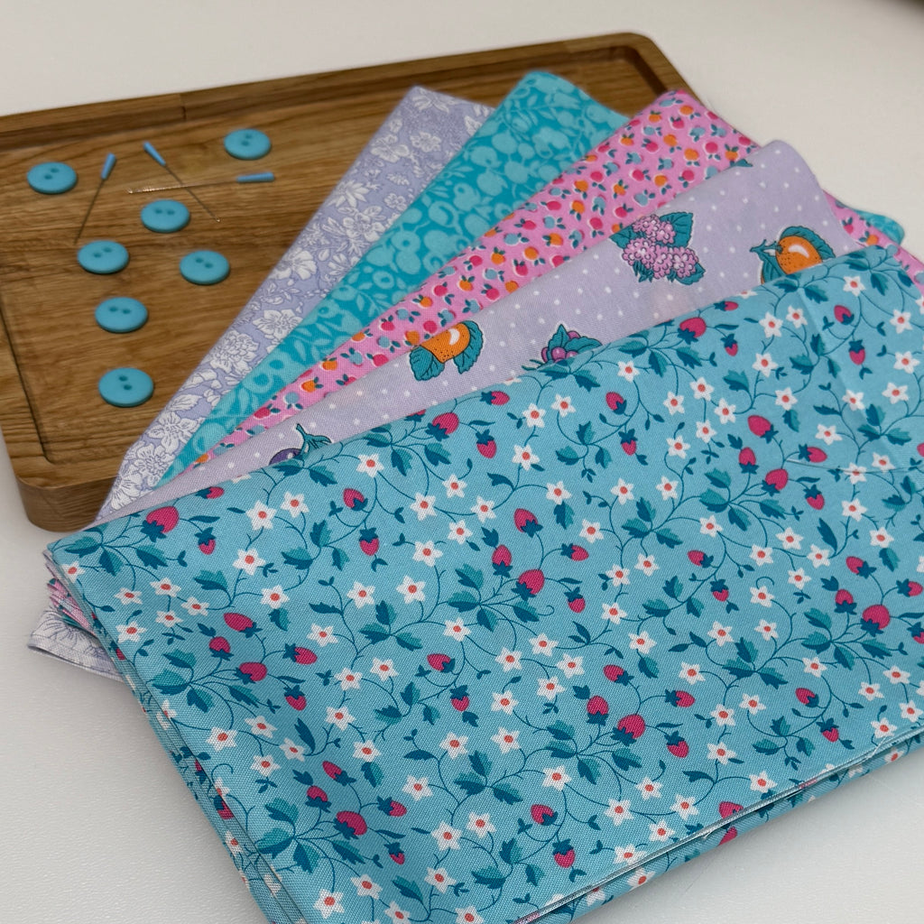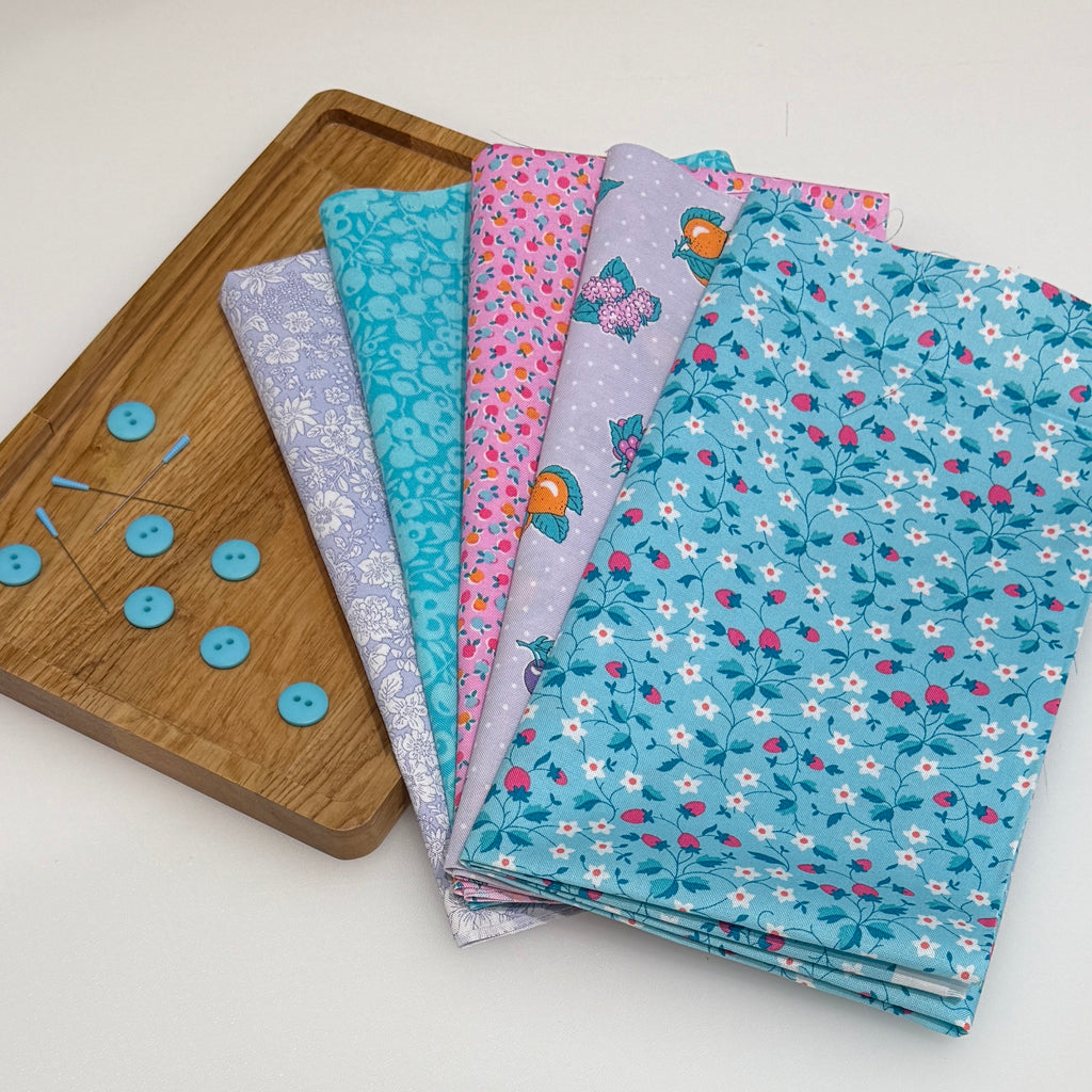 This set includes 5 pieces of Liberty Lasenby quilters cotton fabric. You can chose fat quarters (50cm (18 inches) x 56cm (22 inches) or fat eights (23cm (9 inches) x 56cm (22 inches).