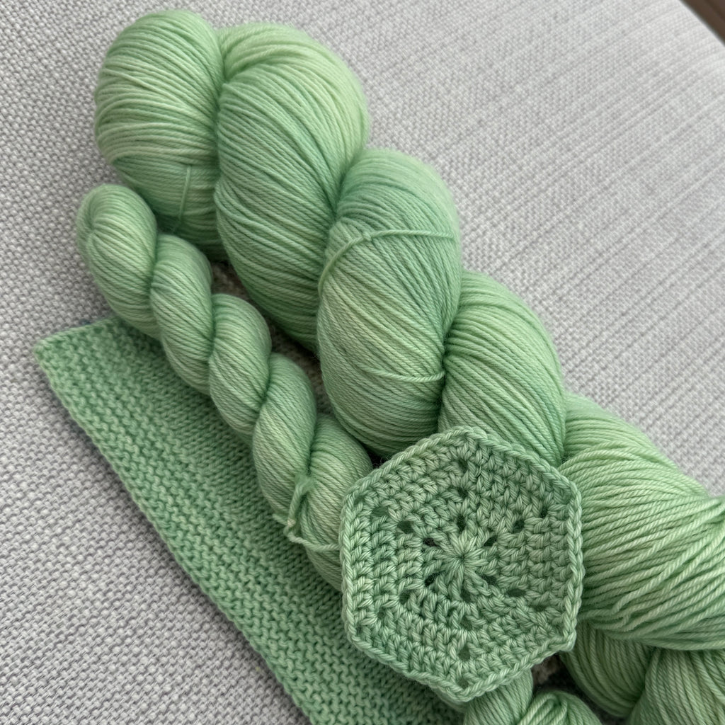 Please be aware that different batches of this yarn may be slightly different. Some bases take the dye slightly differently to others, the images shown are merino and nylon.