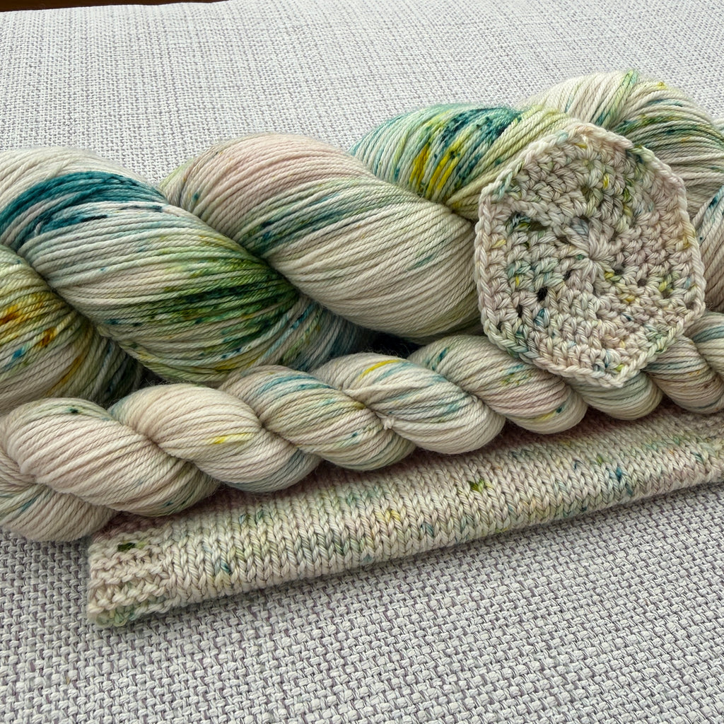 Hand wash and dry flat. Although I have taken care for colours not to run as these yarns are hand dyed it is best to wash them separately from other lighter colours.