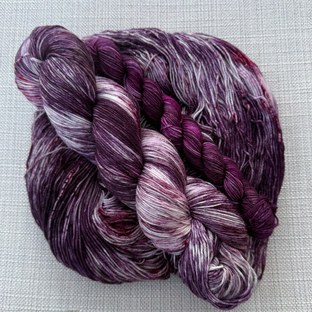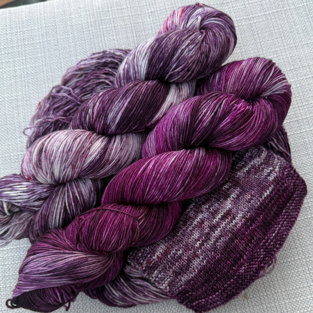 The yarn is enough to create a pair of socks (50g + 20g sets may not be enough if you have large feet) or if you order the shawl set (2 x 100g skeins, 1 main colour and 1 contrast colour) enough to make a two colour shawl. If you would like two skeins of the main colour please leave a note with your order or email me ellie@crafthousemagic.co.uk. Sock sets are available in Merino, Stellina or BFL 4 ply (fingering weight) and Merino DK bases that include nylon (not available in luxury bases MCN or baby alpaca 4ply). 70g sock sets are only available in Merino and Stellina bases. Please see details of yarn bases below.